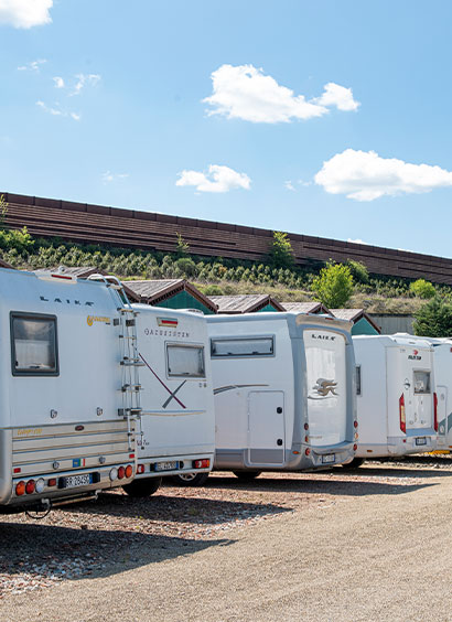 Ampie piazzole dedicate a camper, caravan e imbarcazioni con spazi studiati per facilitare ogni manovra.